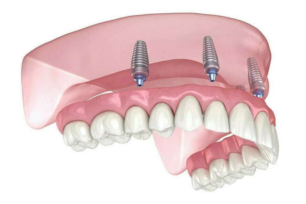 Une fois le dispositif choisi, 2 à 4 implants sont mis en place lors d’un premier rendez-vous. Après une période d’ostéointégration d’environ 3/4 mois, le dispositif est mis en charge. La partie de la prothèse qui est en contact avec la gencive est évidée afin d’y fixer les attaches.